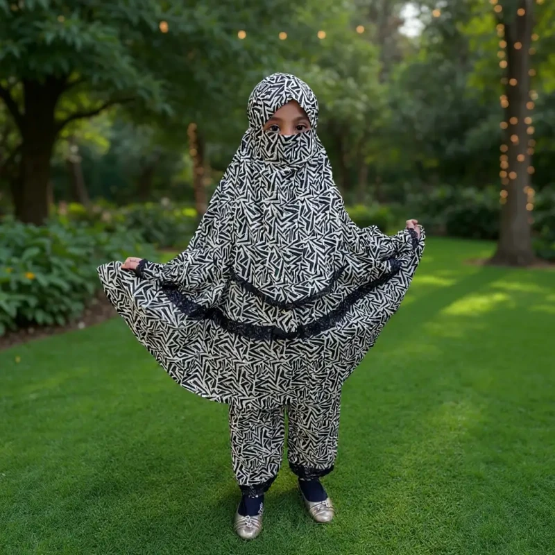 ✅ আধুনিক ও ইসলামিক ডিজাইন – ছোট্ট হিজাবি প্রিন্সেসদের জন্য একদম পারফেক্ট।