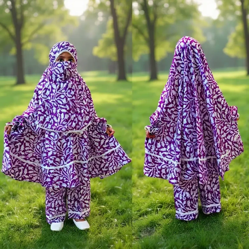 ✅ আধুনিক ও ইসলামিক ডিজাইন – ছোট্ট হিজাবি প্রিন্সেসদের জন্য একদম পারফেক্ট।